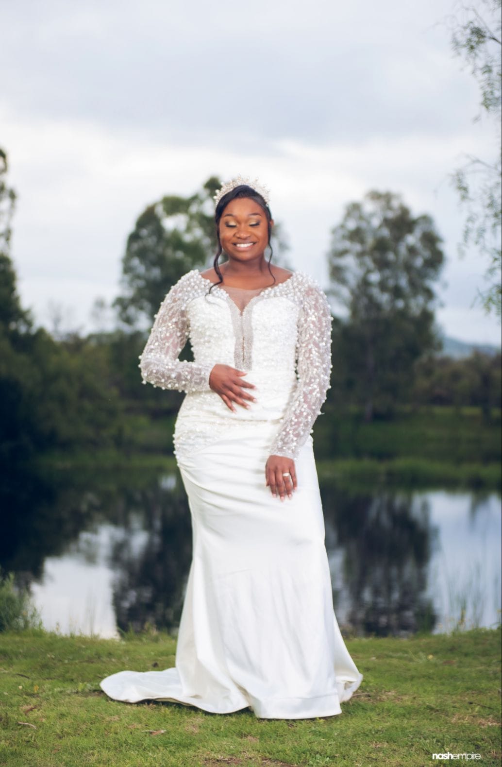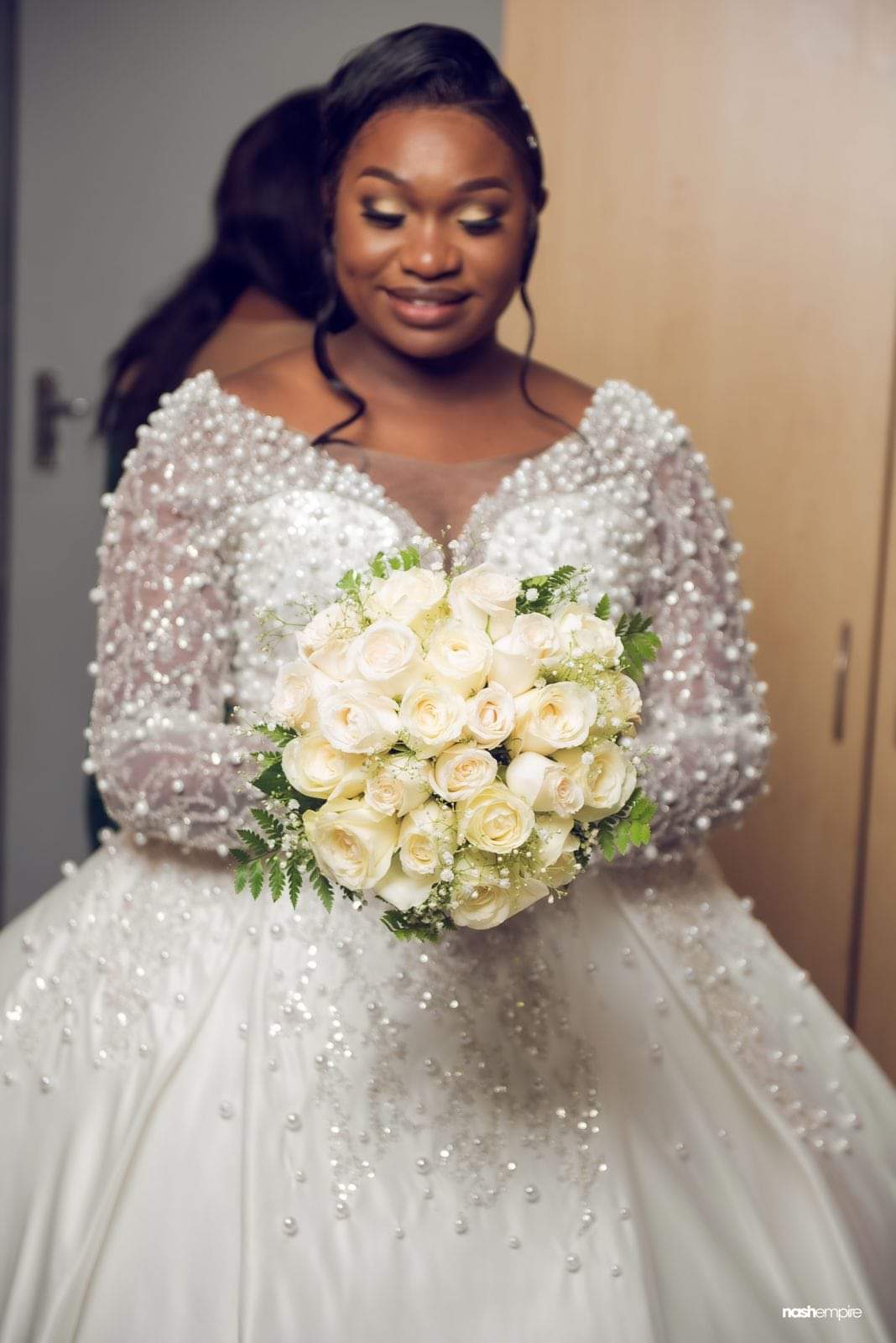 2 piece wedding gown, beaded, long sleeves.